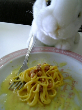以前イタリアで買った料理の本を片手に、本場のカルボナーラを作って