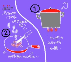 とりあえず沸騰したお湯の中で五分くらい?煮る。