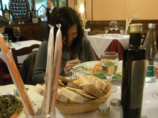 すっかり日も暮れ、夕食は宿のあるシエナで食べることに。