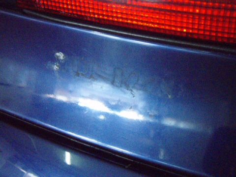 まずは残ってる”イグラ”エンブレムをテグスでガリガリと力任せに