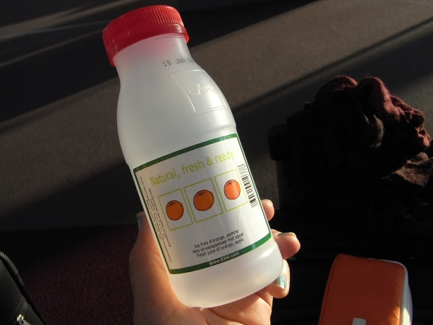 空港行きのバスの中で食べるために、娘に蜜柑を選ばせた。