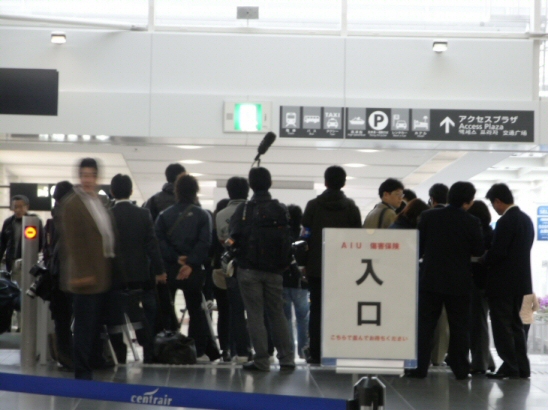 搭乗ロビーへ駆けつけると、さらにすごい報道陣の数。