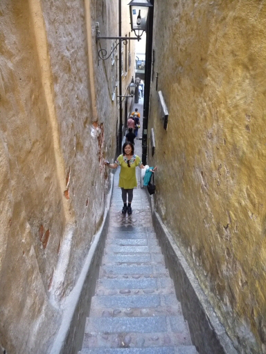 最も狭い通り。90cmほどの幅で、ヒトがすれ違うことができないほど。