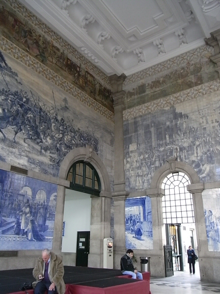 アズレージョと呼ばれる、青いタイル画が見事!!