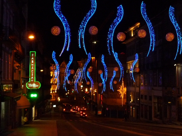 ポルトガル(ここポルトだけじゃなく)の街中のイルミネーションは