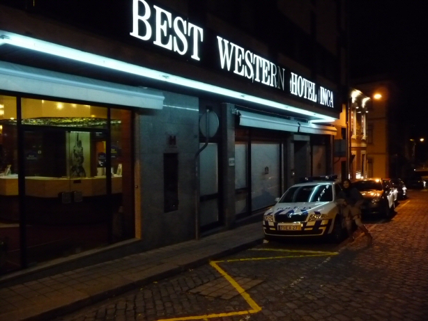 よくみたらホテル真横の小さなアパートメントは警察署。
