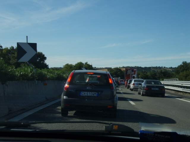 ・・・この時期は南でのバカンス帰りのヨーロッパ人で渋滞するので