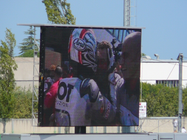 大喜びなイタリアーノの姿と、その後のドゥカティの赤いマシンを