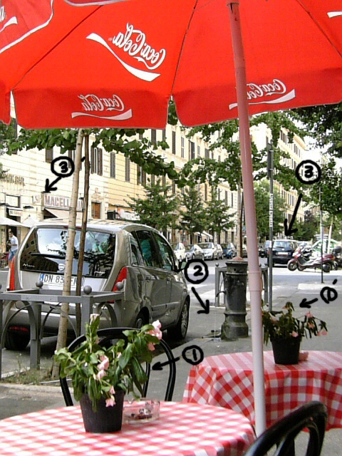 ③+③’=パトカー二重駐車。警官はそのまま向かいのバールでカッフェ。