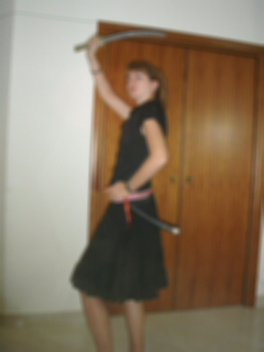 玩具屋で買った刀で殺陣ポーズ?