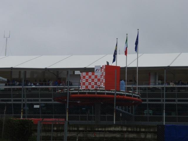 移動中の通路(高架そば)から見える表彰台。