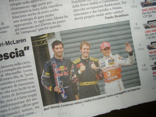 お久しぶりです。今年もイタリアGP観に行ったんですね!場所は去年と同じ席あたりですかね?うらやましい限りです。でも天気は、去年の方がよかったかな。。。
