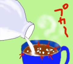 >なんかチーズかヨーグルトみたいなカケラがいっぱい浮いてきた。(爆