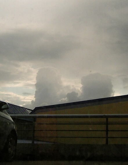 ジムの階段を登る途中で見つけたツインタワーのような不思議な雲。