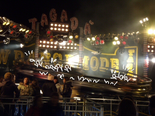 円状の一続きの座席にたくさんのヒトが座り、それが高回転で廻る!!