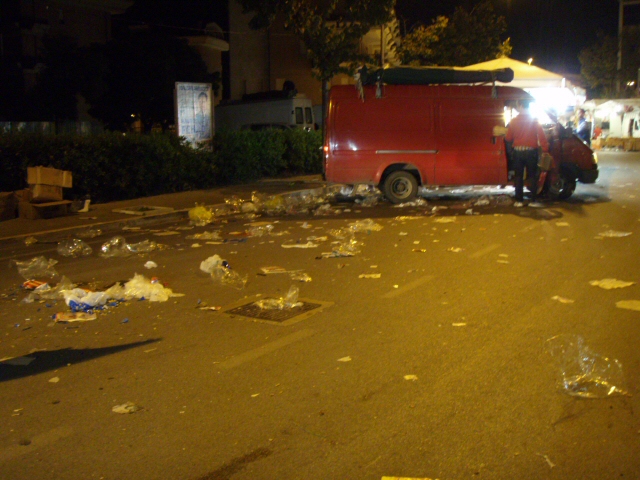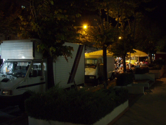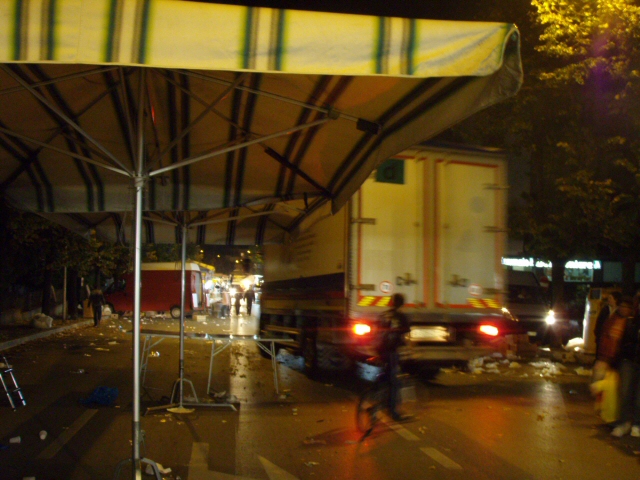 もう撤収時間なのか、こんなデカイ配送車もクラクション鳴らしながら