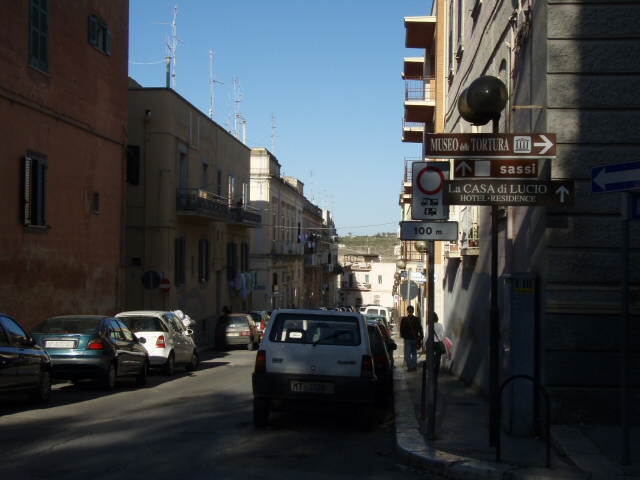 駐車場にクルマを停め、sassi(サッシ/洞窟住居)の看板を頼りに歩く。