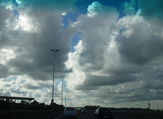 今朝のわが町はお天気だったのに、ローマへ向かう途中の峠は大雨。