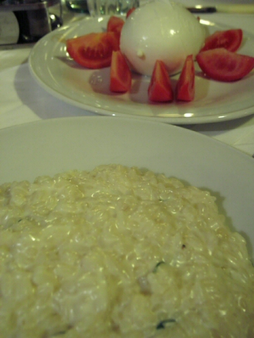 手前は大好きなクワットロ・フォルマッジョ(4種類のチーズ)のリゾット。