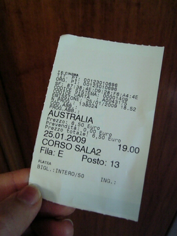 ちなみに見てきた映画は「オーストラリア」。内容が難しいと思われたので、