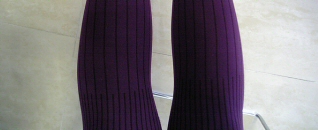 ちなみに履いてるタイツ(濃紫)に黒のストライプが入ってるのだが