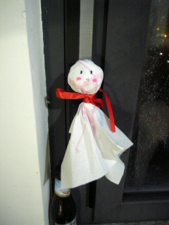 週末、日本の友人に頼まれてテルテル坊主を作り、