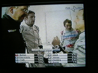 ”ブラウンGP”がドライバーのバトンと共にポールポジションを獲得。