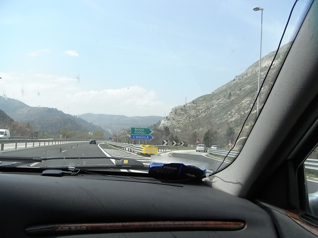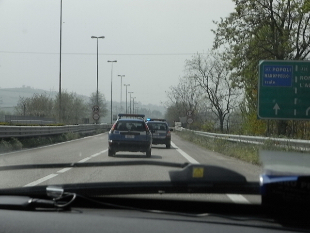 ローマへ向かう途中、ラクイラへ向かうパトカーや自衛隊が何台も。