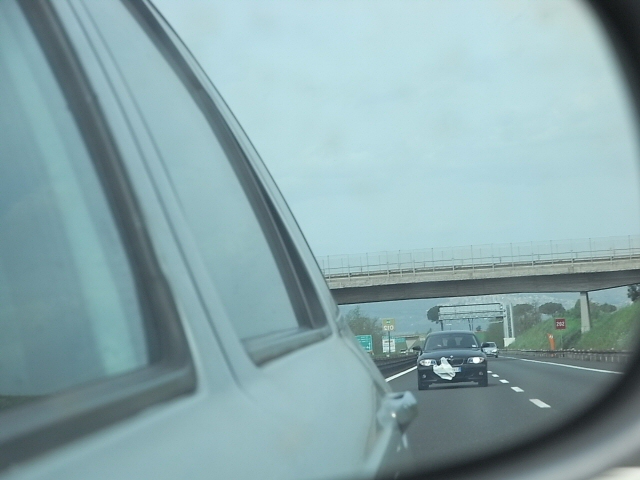我々の前を走行中のクルマが突然、クラクション&手を振って