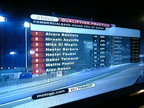 土曜日の夜、ローマのホテルでMotoGPの予選をテレビ観戦。