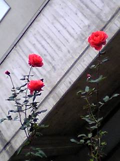 荒れ気味の場所でも、美しいバラが背筋を伸ばして空を向いていました。