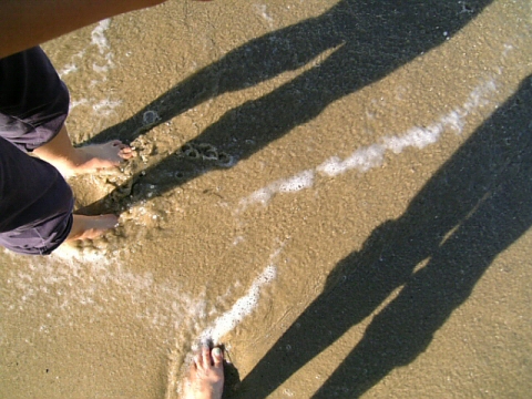 海の水は、まだ冷たい!