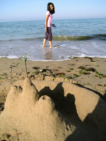 娘と砂の城を作っていたら、まだ1~2歳くらいの小さな女の子を
