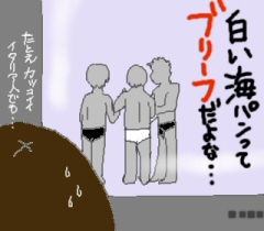 バカンス予想なるものがあり、そこで出た海辺の男たち画像。