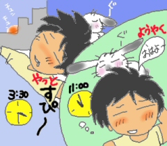 金曜日には、自分の部屋で深夜遅くまで漫画書いてるみたい。当然起きてくるのは、昼前。