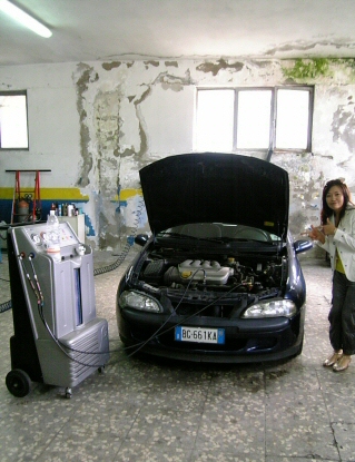 エアコンのガスを入れてもらうためだ。
