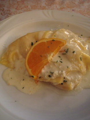 オレンジソースとリコッタチーズの優しい甘みとパスタの