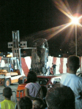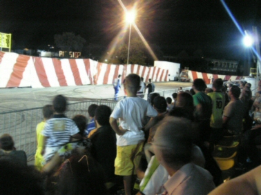 中は結構狭く、鉄筋で組んで作った簡易の観客席は、時間ギリギリに