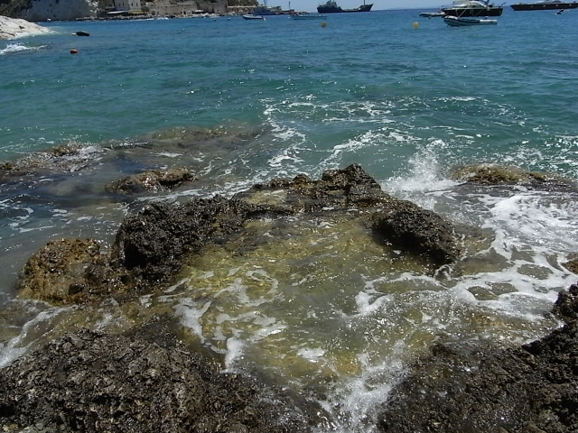 長崎生まれ長崎育ちの相方はガマンできず、岩場でザブザブ気持ちよさ気に