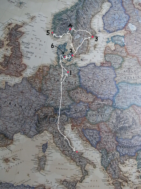 8/13 ノルウェー・Stavangerからデンマーク・Odense(地図6)へ。(約1300km)