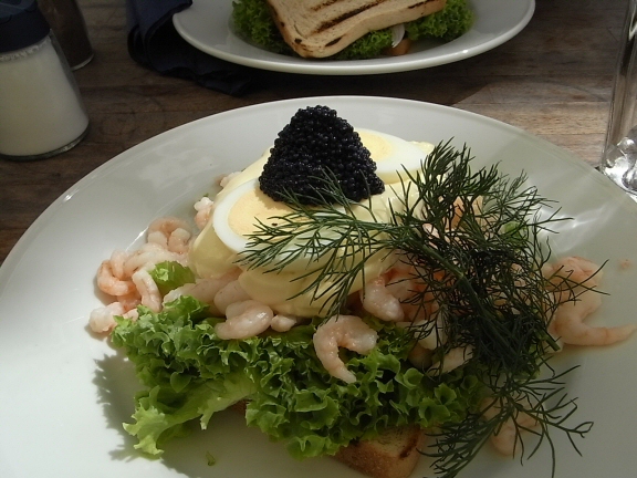 小エビとキャビアのデンマーク料理オープンサンド♪