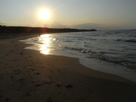 夕刻時、ムスメと久しぶりに港の海岸へ散歩に出かけた。