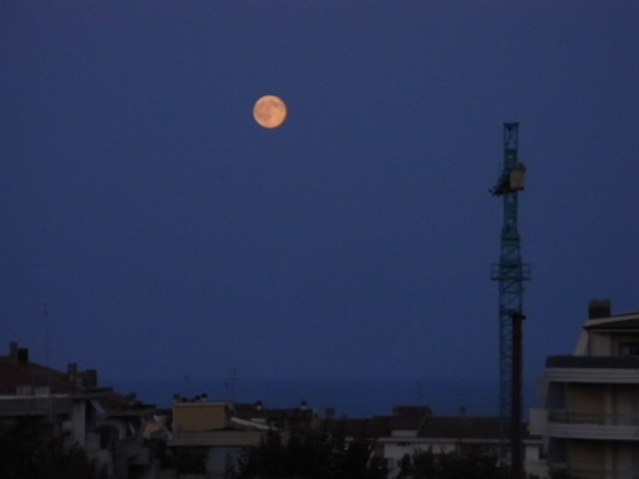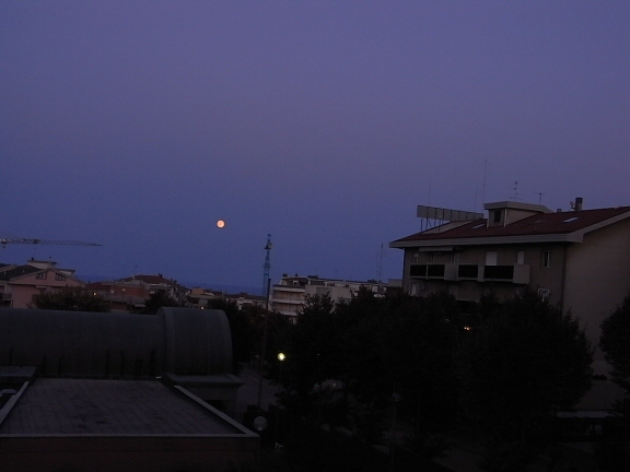 今日の日没後の月はフシギな色だった。