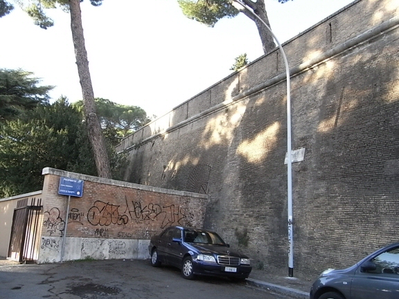 向かって左はバティカンの領域。ここはカベ一枚隔てる国境。