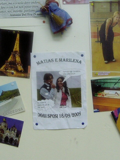 子供たちの写真の中に・・・なぜか”私たち結婚しました”の貼り紙が。