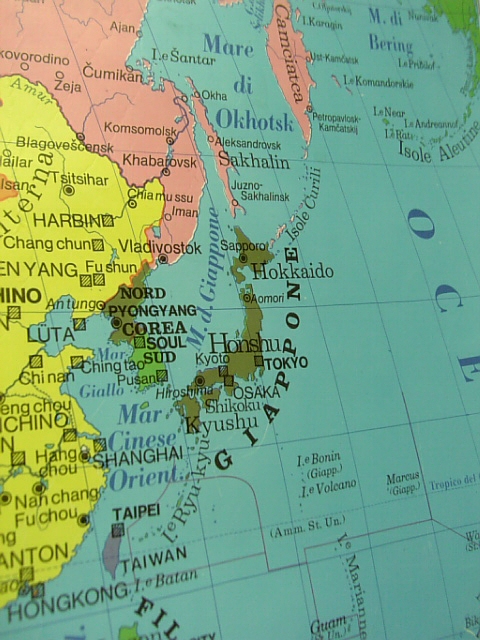 面白くてパチリ。イタリアの地図には日本がこんな風に載ってるんだね。