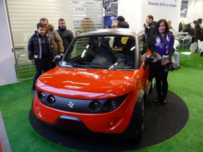 最後に一番気になったイタリア製の小型電気自動車と一緒にパチリ。