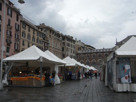 水族館の前にはリグーリアの名産物?やフルーツ盛り合わせ、