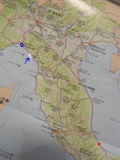 今回の移動を毎度お馴染み?イタリアの地図で見ると、