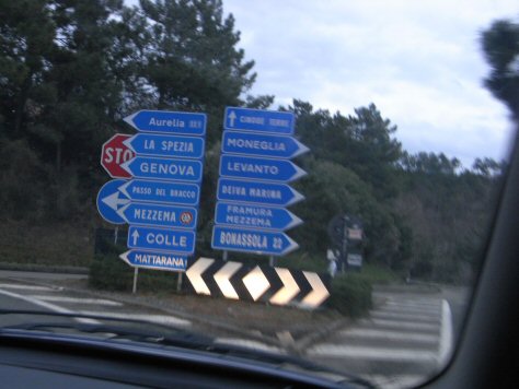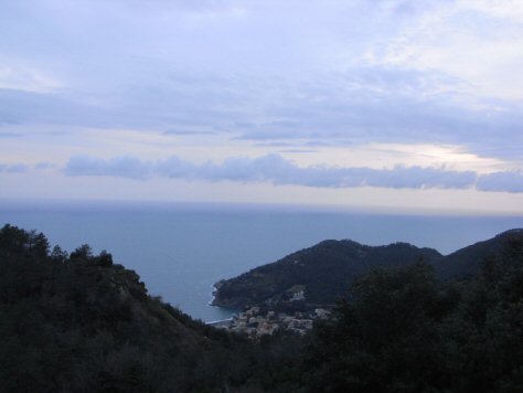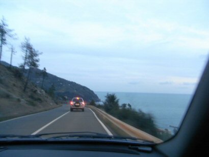 夕暮れの山道(高速道路)をGenovaからLevantoまで走る。